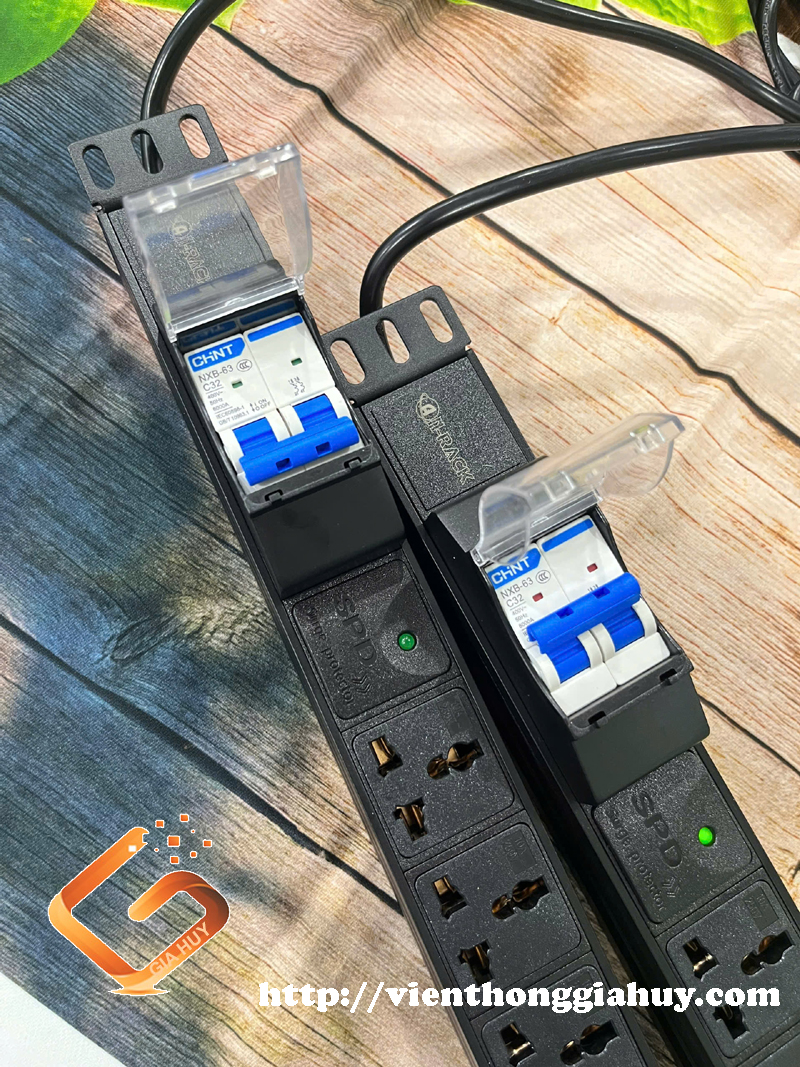Thanh nguồn PDU 6 ổ chống sét ( SPD Surge Protector ) 1U gắn rack 19″ :